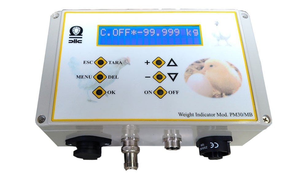 PM30 is a system suitable for getting the average weight in chickens , duck and turkey breedings. The recorded data are the following: Average daily weight / Maximum recorded weight / Minimun recorded weight / Number of weighed animals / trend / Homogeneity %